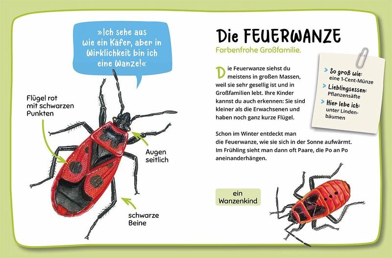 KOSMOS-Naturkompetenz für Kindergarten- und Vorschulkinder.Marienkäfer, Fruchtfliege oder Kohlweißling haben wohl die meisten Kinder schon einmal gesehen. Aber auch Tagpfauenauge, Libelle und Gartenkreuzspinne sind bei uns gut zu beobachten. Dieses Sachbilderbuch vermittelt erstes Wissen über unsere heimischen Krabbeltiere. Damit die Kinder gleich ein Erfolgserlebnis haben, enthält es 16 Arten, die besonders häufig vorkommen. Großformatige Illustrationen helfen beim sicheren Bestimmen. Kurze, spannende Infotexte und Steckbriefe machen es Kindern leicht, sich besondere Verhaltensweisen und andere Fakten über die Tiere zu merken.KOSMOS Natur von Anfang an - konsequent nachhaltig.