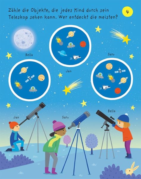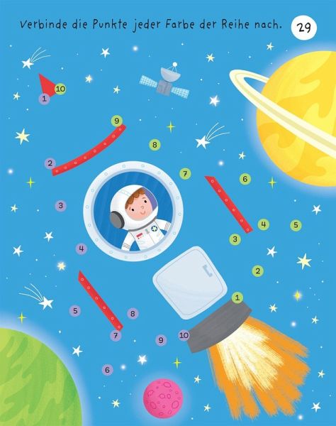 Freundliche Aliens, mutige Astronautinnen, fremde Planeten und das große, weite Weltall - auf den heraustrennbaren Seiten warten über 90 Wort-, Zahlen- und Bilderrätsel auf kleine Weltraumfans. Mit Lösungen.