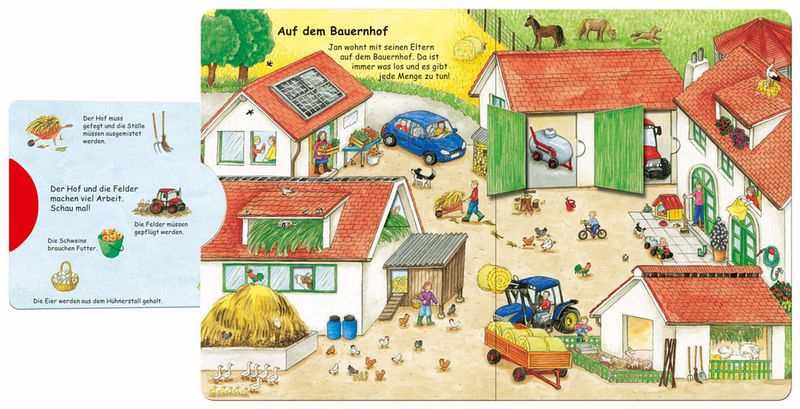 Der Bauernhof ist ein spannendes Thema für kleine Kinder. Sowohl zu den Fahrzeugen als auch zu den Tieren haben sie viele Fragen. Hinter zahlreichen Klappen und Schiebern finden sie in diesem Buch die Antworten. So wird allererstes Sachwissen spielerisch und altersgemäß vermittelt.