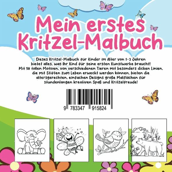 Das Malbuch "Mein erstes Kritzel-Malbuch" ist speziell für Kinder im Alter von 1-3 Jahren konzipiert. Das Buch ist perfekt auf die Bedürfnisse und Fähigkeiten dieser jungen Altersgruppe abgestimmt und bietet eine wunderbare Möglichkeit, die Kreativität und Feinmotorik der Kleinen zu fördern.Das Malbuch enthält eine Vielzahl von einfachen und ansprechenden Bildern, die von niedlichen Tieren, Formen und Gegenständen bis hin zu Fahrzeugen und Landschaften reichen. Die Bilder sind mit dicken, klaren Linien gezeichnet und auf jeder Seite gibt es genügend Platz zum Ausmalen.Jede Seite des Buches ist auf hochwertigem Papier gedruckt, das speziell für junge Kinder entwickelt wurde und somit robust und widerstandsfähig gegen Verschmutzungen und Verschleiß ist.Die Themen des Buches sind altersgerecht und bieten eine perfekte Möglichkeit für die Kleinen, die Welt um sich herum zu entdecken und ihre Fantasie auszudrücken. Das Malbuch eignet sich ideal für den Einsatz zu Hause oder unterwegs und bietet stundenlangen Spaß für die ganze Familie.Insgesamt ist "Mein erstes Malbuch" eine wunderbare Einführung in die Welt des Malens für Kleinkinder. Es fördert ihre Kreativität, verbessert ihre Feinmotorik und hilft ihnen, ihre Konzentration und Geduld zu verbessern. Es ist das perfekte Geschenk für jedes Kleinkind und ein wunderbarer Weg, um die künstlerische Entwicklung der Kleinen zu fördern.