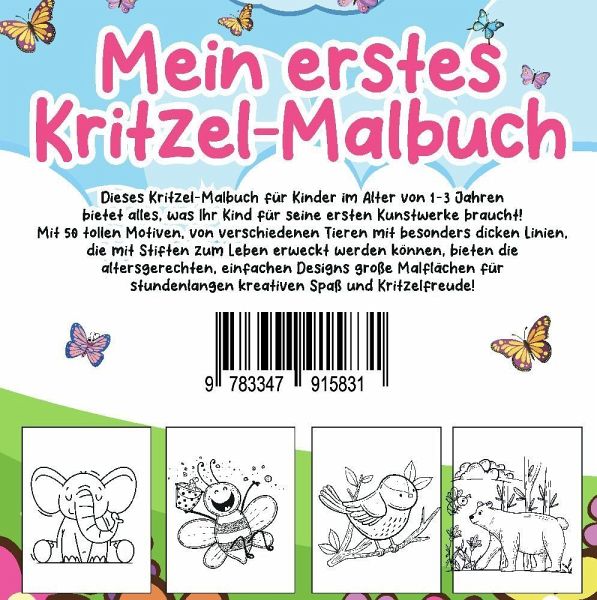 Das Malbuch "Mein erstes Kritzel-Malbuch" ist speziell für Kinder im Alter von 1-3 Jahren konzipiert. Das Buch ist perfekt auf die Bedürfnisse und Fähigkeiten dieser jungen Altersgruppe abgestimmt und bietet eine wunderbare Möglichkeit, die Kreativität und Feinmotorik der Kleinen zu fördern.Das Malbuch enthält eine Vielzahl von einfachen und ansprechenden Bildern, die von niedlichen Tieren, Formen und Gegenständen bis hin zu Fahrzeugen und Landschaften reichen. Die Bilder sind mit dicken, klaren Linien gezeichnet und auf jeder Seite gibt es genügend Platz zum Ausmalen.Jede Seite des Buches ist…mehr