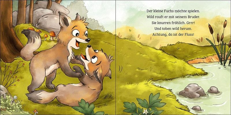 Schau nur, die kleinen Füchse schlüpfen aus ihrem Bau! Ausgelassen tollen sie umher und erkunden ihre Umgebung. Zwischendurch gibt es einen kleinen Happen zur Stärkung. Wollen wir sie ein bisschen bei ihren Spielen beobachten? Aber ganz leise, damit sie uns nicht entdecken!