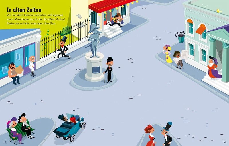 Lass mit über 100 Stickern Autos über die Rennstrecke rasen, durch die Stadt flitzen oder in der Werkstatt reparieren. Lerne mehr über die Geschichte des Autos und entdecke viele verschiedene Fahrzeugtypen.
