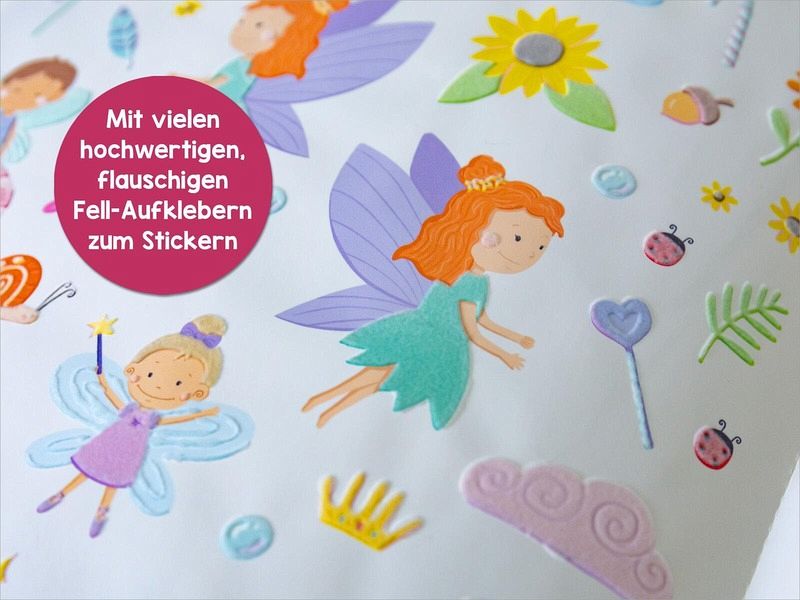 Hier flattern alle Feen fröhlich über wunderbar illustrierte Blumenwiesen, verzauberte Wasserfälle und Feenhäuschen. Wähle aus über 400 kuscheligen Aufklebern zum Fühlen und Streicheln und sticker dir die Feenwelt, wie sie dir gefällt!