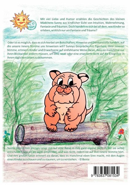 Mit viel Liebe und Humor erzählen die Geschichten des kleinen Mädchens Sunny aus kindlicher Sicht von Intuition, Wahrnehmung, Fantasie und Träumen. Doch handelt es sich bei all dem, was Kinder so erleben, wirklich nur um Fantasie und Träume? Oder ist es möglich, dass es sich hierbei um Botschaften, Hinweise und Denkanstöße handelt, auf die unsere innere Stimme uns hinweisen will? Sunnys Gespräche mit Tigerherz, ihrer inneren Stimme, erinnern Kinder und Erwachsene auf einfühlsame Weise daran, dass sie manchmal nur ihren Blickwinkel ändern müssen, um eine neue oder eine erweiterte Sicht auf die Ereignisse in unserem täglichen Lebens zu bekommen. Sunny nimmt ihre kleinen Leser mit auf eine Reise in ihre ganz eigene Welt, in der sie selbst entscheidet, was sie als wahr empfindet, und was nicht, indem sie auf ihre innere Stimme hört. Und ihre großen Leser erinnert sie daran, dass es manchmal eben Sinn macht, mit den Augen eines Kindes zu schauen und zu staunen, um zu verstehen. - El Benia