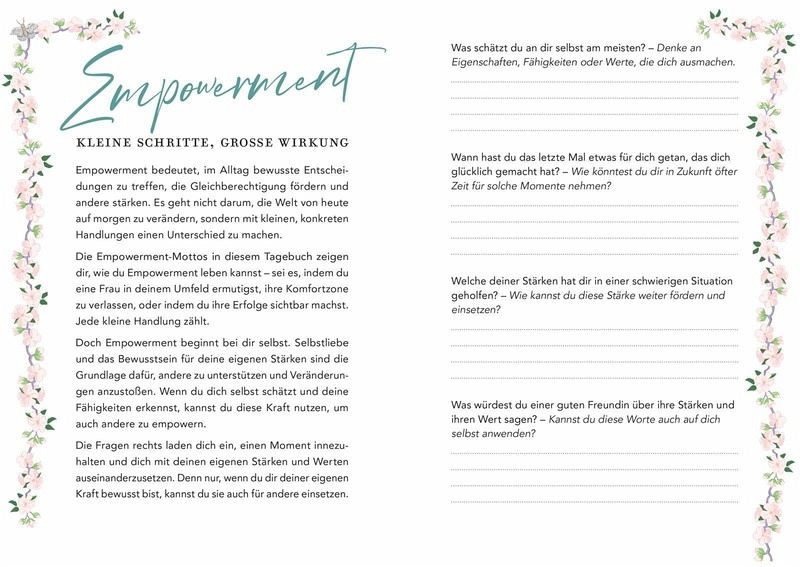 Dieses Tagebuch unterstützt Frauen, eigene Stärken zu erkennen, und bietet ihnen Inspiration, wie sie andere Frauen in ihrem Leben ermutigen können, ihren eigenen Weg zu gehen.