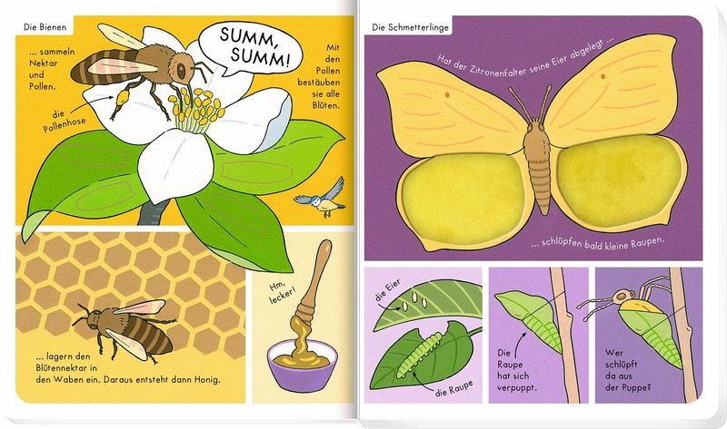 Fühlelemente, Gucklöcher und kurze Texte geben die Antwort und machen erstes Sachwissen begreifbar.