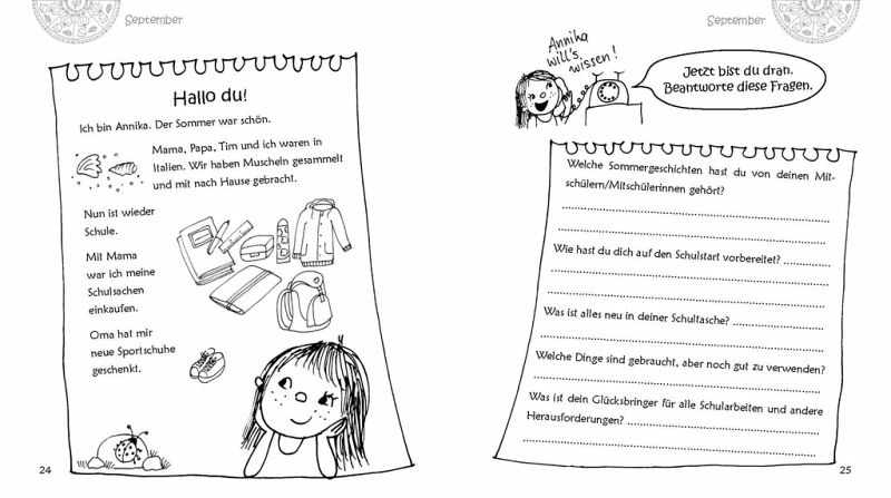 In diesem wundervoll illustrierten Kalender-Tagebuch begleitet dich Annika durch alle Jahreszeiten. Ob Frühling, Sommer, Herbst oder Winter: Du bestimmst, wann es losgeht. Natürlich hast du genug Platz zum Schreiben und Malen. Zwölf fantasievolle Monats-Mandalas warten außerdem darauf, von dir bunt ausgemalt zu werden.Weißt du, dass Annika eine Spezialistin für Gefühle ist? Mit ihren guten Tipps hilft sie dir dabei, deine Gedanken und Gefühle zu ordnen. So kannst du besser auf dich achten und herausfinden, was dir wirklich gut tut. Wappne dich gemeinsam mit Annika für deine täglichen Herausforderungen! Egal ob zu Hause, in der Schule oder in der Freizeit mit Freunden und Freundinnen: Fast wie durch Zauberei kann mit diesem Kalender-Tagebuch jeder Tag ein ganz besonderer werden. Worauf wartest du noch? Schnapp dir deine Lieblingsstifte und leg los!