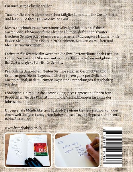 Ein Gartentagebuch inkl. AussaatkalenderWas können Sie in Ihrem Garten Tagebuch notieren?Sammeln Sie Informationen über Ihren Garten, Hochbeet, Balkon.Ein Garten Tagebuch ist ein praktisches Werkzeug für Gärtner, um Informationen über Ihren Garten zu sammeln und nützliche Beobachtungen festzuhalten.Sie lieben es im Garten zu arbeiten?Mit diesem Tagebuch können Sie Ihre Gedanken und durchgeführten Arbeiten im Garten festhalten.Fragen Sie sich, welche Möhrensorte war die süßeste im vergangenen Jahr? Welche Sorte Tomaten habe ich gepflanzt?Mit dem persönlichen Gartentagebuch können Sie diese Fragen in Zukunft leicht beantworten.Notieren Sie wann Sie welche Blumen- oder Gemüsesorten gepflanzt haben.Schreiben Sie sich die aktuellen Wetterdaten auf.Protokollieren Sie, wann Sie gedüngt haben oder wann ein Rückschnitt erfolgte.Haben Sie Schädlinge und Krankheiten entdeckt? Notieren Sie Ihre Maßnahmen.Welche Gemüsesorte ist in diesem Jahr nicht gut gewachsen oder welche Blumen blühen heuer besonders schön.Erstellen Sie Aufgabenlisten um wichtige Arbeiten nicht zu vergessen.Fotos und Skizzen:Ihre Ideen und Pläne sind im Garten Tagebuch gut aufgehoben.Soll der Garten umgestaltet werden oder das Hochbeet doch in eine schattige Lage wandern?Machen Sie doch dazu Skizzen in Ihrem Tagebuch und notieren Sie Ihre Ideen, damit diese nicht vergessen werden.Oder kleben Sie Fotos, Samentütchen und Schnipsel aus einem Gartenmagazin in Ihr persönliches Tagebuch.Skizzieren Sie ein mögliches Gartenlayout.Erstellen Sie einen Lageplan für Ihre Gemüsebeete.Sammeln Sie Ideen aus Gartenmagazinen direkt im Tagebuch.Notieren Sie Ihre Eindrücke und Beobachtungen.Lassen Sie Ihre Gartengäste einige Zeilen in das Tagebuch schreiben.Viel Platz:Mit 200 Seiten bietet das Tagebuch viel Platz um seine Gedanken und erledigte Arbeiten im Garten zu notieren.Ideal auch als Geschenk für Hobby GärtnerInnen.Aussaatkalender:Im Tagebuch finden Sie auch einen Aussaatkalender.Monatlich gegliedert können Sienachlesen, was alles bereits gesät oder gepflanzt werden kann.Robust für den Garteneinsatz:Speziell das gebundene Buch mit Hardcover Einband ist robust genug um es bei der Gartenarbeit bei sich zu haben.So können gleich Notizen während der Gartenarbeit eingetragen werden.