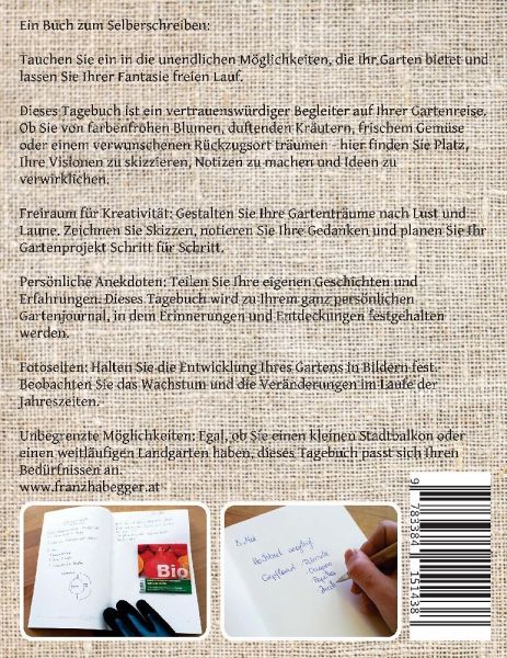 Gartentagebuch mit AussaatkalenderEin Garten Tagebuch ist ein praktisches Werkzeug für Gärtner, um Informationen über Ihren Garten zu sammeln und nützliche Beobachtungen festzuhalten.Sie lieben es im Garten zu arbeiten?Mit diesem Tagebuch können Sie Ihre Gedanken und durchgeführten Arbeiten im Garten festhalten.Fragen Sie sich, welche Möhrensorte war die süßeste im vergangenen Jahr? Welche Sorte Tomaten habe ich gepflanzt?Mit dem persönlichen Gartentagebuch können Sie diese Fragen in Zukunft leicht beantworten.Notieren Sie wann Sie welche Blumen- oder Gemüsesorten gepflanzt haben.Schreiben Sie sich die aktuellen Wetterdaten auf.Protokollieren Sie, wann Sie gedüngt haben oder wann ein Rückschnitt erfolgte.Haben Sie Schädlinge und Krankheiten entdeckt? Notieren Sie Ihre Maßnahmen.Welche Gemüsesorte ist in diesem Jahr nicht gut gewachsen oder welche Blumen blühen heuer besonders schön.Erstellen Sie Aufgabenlisten um wichtige Arbeiten nicht zu vergessen.Ihre Ideen und Pläne sind im Garten Tagebuch gut aufgehoben.Soll der Garten umgestaltet werden oder das Hochbeet doch in eine schattige Lage wandern?Machen Sie doch dazu Skizzen in Ihrem Tagebuch und notieren Sie Ihre Ideen, damit diese nicht vergessen werden.Oder kleben Sie Fotos, Samentütchen und Schnipsel aus einem Gartenmagazin in Ihr persönliches Tagebuch.Skizzieren Sie ein mögliches Gartenlayout.Erstellen Sie einen Lageplan für Ihre Gemüsebeete.Sammeln Sie Ideen aus Gartenmagazinen direkt im Tagebuch.Notieren Sie Ihre Eindrücke und Beobachtungen.Lassen Sie Ihre Gartengäste einige Zeilen in das Tagebuch schreiben.Viel Platz:Mit 200 Seiten bietet das Tagebuch viel Platz um seine Gedanken und erledigte Arbeiten im Garten zu notieren.Ideal auch als Geschenk für Hobby GärtnerInnen.Aussaatkalender:Im Tagebuch finden Sie auch einen Aussaatkalender.Monatlich gegliedert können Sie nachlesen, was alles bereits gesät oder gepflanzt werden kann.