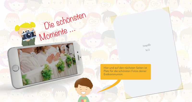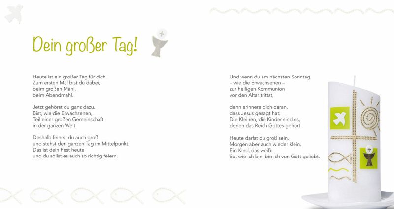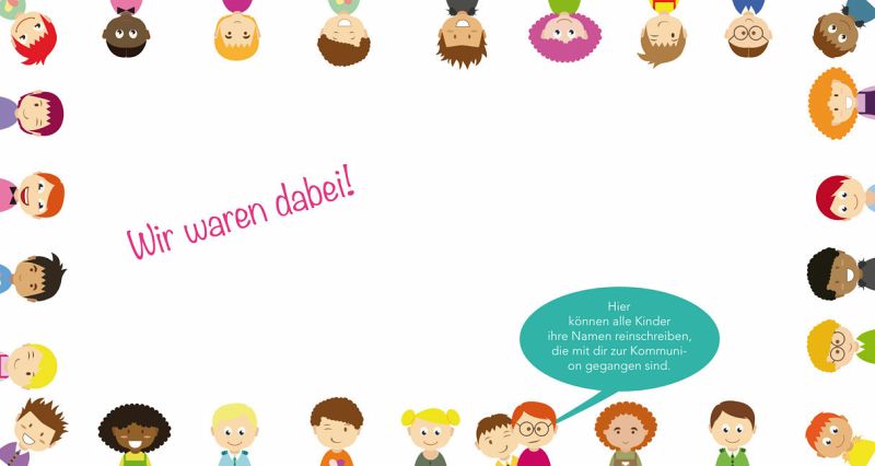 Der Tag der Erstkommunion ist ein ganz besonderer Tag. In diesem Album ist Platz für die schönsten Erinnerungen, für Grüße der Gäste oder der anderen Kommunionkinder. Texte, Gebete und Segenswünsche runden das Album ab zu einem bunten und schönen Erinnerungsstück an diesem großen Tag.