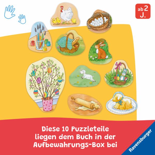 Die liebevoll gestalteten Szenen bringen fröhliche Osterstimmung und lassen die Kinder spielerisch ihre liebsten Ostermotive entdecken. DasBuch ist im Handumdrehen wieder aufgeräumt und sortiert: Nach dem Spiel können die Puzzleteile einfach im Buch verbleiben. Es fällt nichts heraus. Auch der praktische Behälter auf dem Buchcover bietet Platz zum Aufbewahren der Teile.