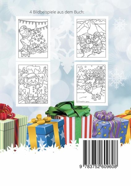 In diesem Buch findest du 30 tolle weihnachtliche Motive zum Ausmalen. Renntiere, Elfen, Weihnachtsmänner, Weihnachtsbäume und viele mehr warten darauf von dir mit den schönsten Farben bemalt zu werden. Die Rückseite der Motive ist immer leer, so dass die kleinen Kunstwerke nicht verschmieren und, wenn gewünscht, auch ausgeschnitten werden können.