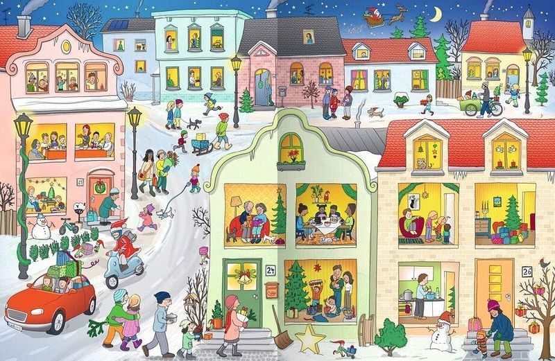 Der Zauber der Weihnachtszeit liegt in der Luft. Entdecke viele spannende, lustige und besinnliche Szenen! Was gibt es auf dem Weihnachtsmarkt zu sehen? Wie werden die Plätzchen in der Weihnachtsbäckerei verziert? Und welches Krippenspiel haben die Kinder einstudiert? Die farbenfrohen Wimmelbilder laden zum Suchen, Geschichtenerzählen und Immer-wieder-Neues-Entdecken ein. Mit Suchaufträgen am Ende des Buches.