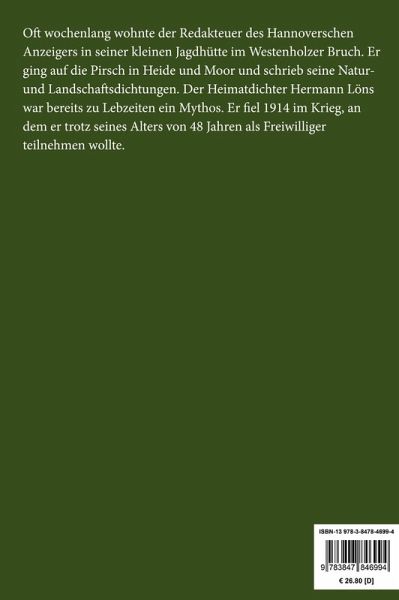Hermann Löns: Mein grünes Buch. Jagdschilderungen Lesefreundlicher Großdruck in 16-pt-Schrift Großformat, 210 x 297 mm Berliner Ausgabe, 2020 Durchgesehener Neusatz bearbeitet und eingerichtet von Theodor Borken Erstdruck: Hannover, Schaper, 1901. Inhaltsverzeichnis: Mein grünes Buch. Hinter der Findermeute. Auf der Murke. In der Krähenhütte. Ein Ringeltauber. Heidfrühling. Am Fuchsbau. Im grünen Maienwald. Wo die Oder rauscht. Am Fuhrenkamp. Ein Pirschtag am Kahnstein. Der Schwarze vom Jammertal. Unter den hohen Fuhren. Im Rauhhorn. Ein roter Bock. Ein goldener Heidherbsttag. Junghahnenbalz. Im Fuhrenstangenort. In der Jagdbude. Auf den Fuchs. Hinter der Krüppelweide. In weißen Wäldern. Auf der Kur. Ein blanker Tag. Silvesternebel. Der Text dieser Ausgabe wurde behutsam an die neue deutsche Rechtschreibung angepasst. Umschlaggestaltung von Thomas Schultz-Overhage unter Verwendung des Bildes: Max Liebermann, Jäger im Feld, 1913. Gesetzt aus der Minion Pro, 16 pt. Über den Autor: Oft wochenlang wohnte der Redakteuer des Hannoverschen Anzeigers in seiner kleinen Jagdhütte im Westenholzer Bruch. Er ging auf die Pirsch in Heide und Moor und schrieb seine Natur- und Landschaftsdichtungen. Der Heimatdichter Hermann Löns war bereits zu Lebzeiten ein Mythos. Er fiel 1914 im Krieg, an dem er trotz seines Alters von 48 Jahren als Freiwilliger teilnehmen wollte.