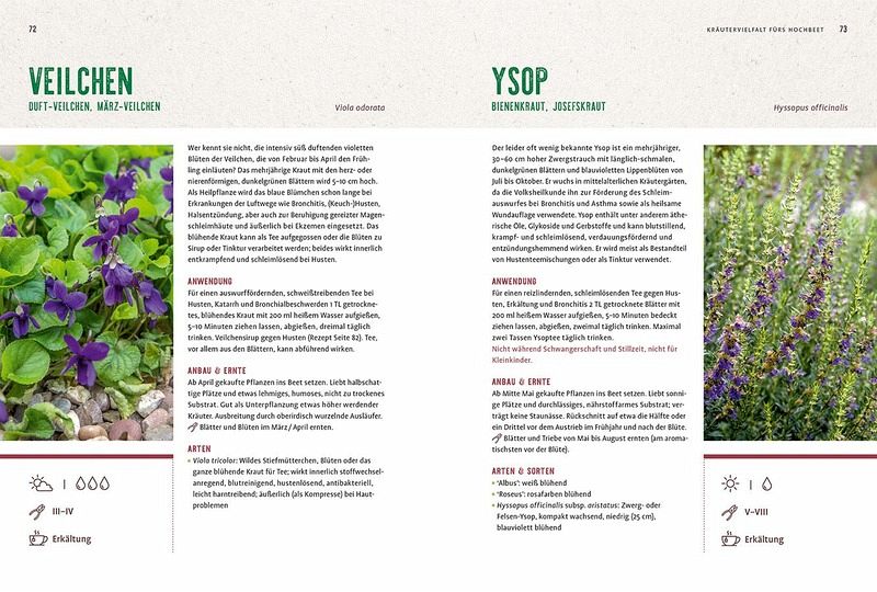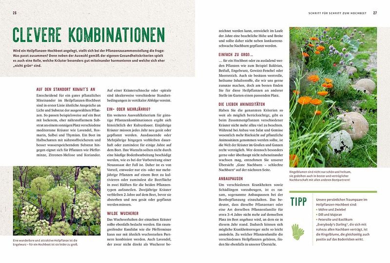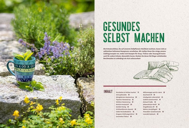 Sie sind Heilpflanzen-Fan und hätten die gesunden Heilkräuter am liebsten immer direkt zur Hand? Dann versuchen Sie doch mal den Anbau im Hochbeet! Erfahren Sie alle Vorteile des Hochbeet-Gärtnerns und lernen Sie die wichtigsten Basics zu Standort, Aufbau und Füllung sowie die richtige Pflege und clevere Pflanzkombinationen. Es gibt 36 abwechslungsreiche Heilpflanzen-Porträts zu entdecken, die ohne viel Aufwand sprießen und die Gesundheit unterstützen. 8 heilkräftige Themenbeete für Fälle wie Husten, Schnupfen, Heiserkeit und Bauchweh, kleine Wunden oder starke Nerven, laden direkt zum Nachpflanzen und Nutzen ein. 20 wohltuende Heilrezepte helfen Jung und Alt kleine Beschwerden zu lindern.
