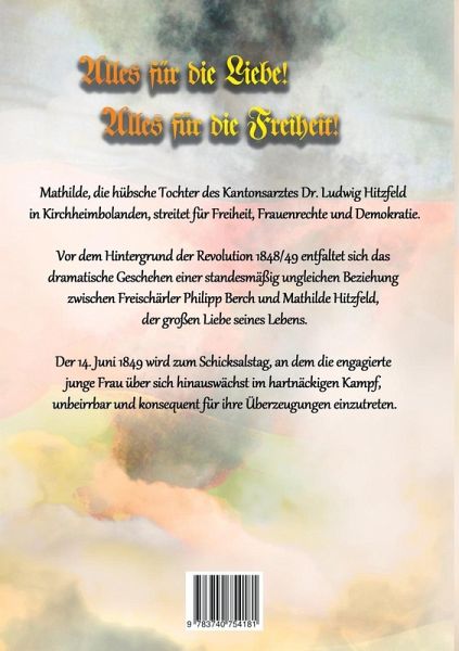 Mathilde, die hübsche Tochter des Kantonsarztes Dr. Ludwig Hitzfeld in Kirchheimbolanden, streitet für Freiheit, Frauenrechte und Demokratie.Vor dem Hintergrund der Revolution 1848/49 entfaltet sich das dramatische Geschehen einer standesmäßig ungleichen Beziehung zwischen dem Freischärler Philipp Berch und Mathilde Hitzfeld, der großen Liebe seines Lebens.Der 14. Juni 1849 wird zum Schicksalstag, an dem die engagierte junge Frau über sich hinauswächst im hartnäckigen Kampf, unbeirrbar und konsequent für Überzeugungen einzutreten.