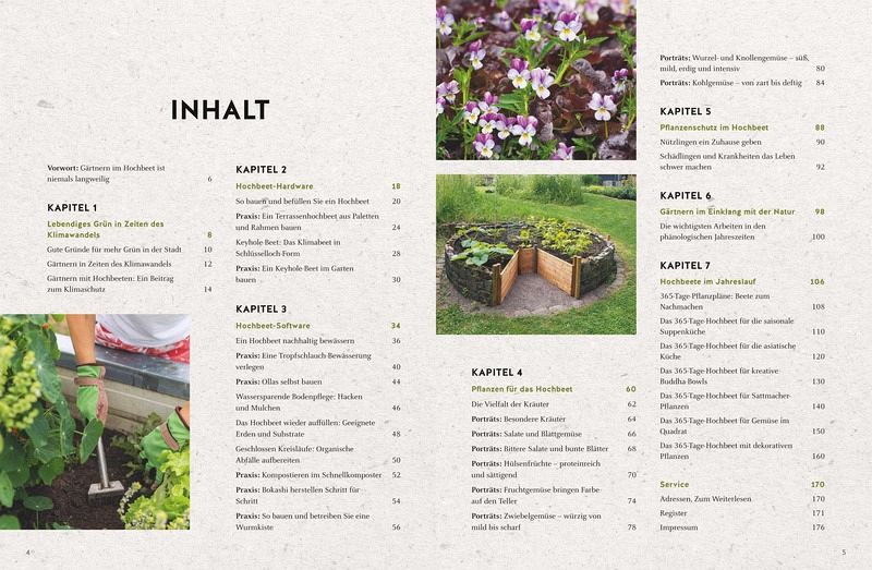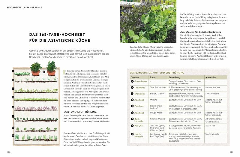 Das Herzstück des Buches bilden 6 neue Bepflanzungsvorschläge für ganzjährige Ernte, mit individuellen Beetplänen für alle wichtigen phänologischen Jahreszeiten und ausführlicher Beschreibung der praktischen Tätigkeiten. So ist für jeden etwas dabei und der Erntespaß im Hochbeet ist garantiert!
