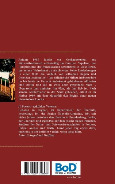 Anfang 1986 landet ein Geologiestudent aus Südwestfrankreich unfreiwillig im Quartier Napoléon, der Hauptkaserne der französischen Streitkräfte in West-Berlin, um seinen Wehrdienst zu absolvieren.Seine Entdeckungen in einer Welt, die vielfach von seltsamen Regeln und Gesetzen bestimmt ist - das militärische Milieu der Alliierten, insbesondere im bis heute zu Unrecht unbekannt gebliebenen Alliierten Generalstab und die in zwei Teile gespaltene Stadt - überrascht und amüsiert ihn öfter, als ihm lieb ist. Nach seinem Militärdienst in der Stadt geblieben, erlebt er im Herbst 1989 mit dem Mauerfall den Beginn einer neuen historischen Epoche.…mehr