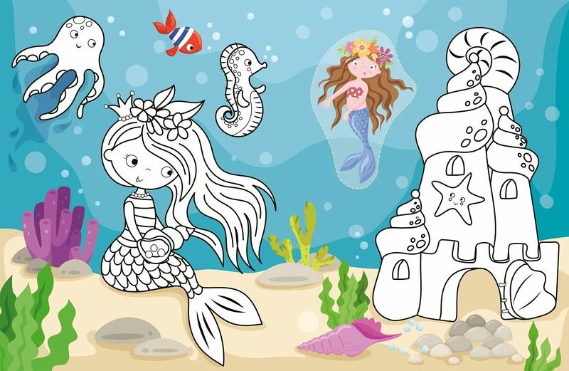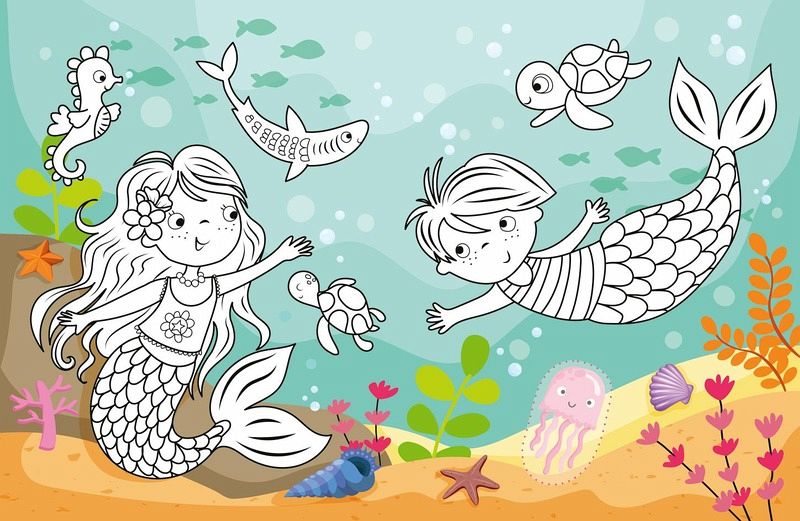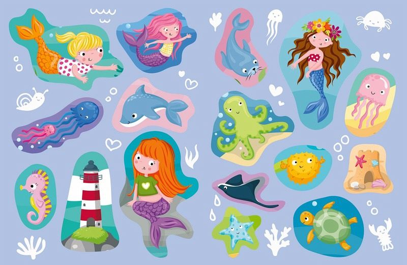 Bezaubernde Meerjungfrauen, bunte Fische, niedliche Schildkröten und viele weitere hübsche Motive lassen die Unterwasserwelt lebendig werden. Der Hintergrund ist farbig, die Nixen und ihre tierischen Freunde können mit Buntstiften und den zugehörigen Stickern kreativ gestaltet werden. Ganz nebenbei fördern Ausmalen und Stickern spielerisch die Konzentration und die Feinmotorik. Eine abwechslungsreiche Beschäftigung für Kinder ab 4 Jahren.