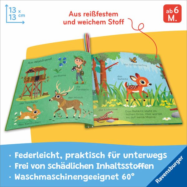 Mein Knuddel-Knautsch-Buch ist ein superstarkes Stoffbuch für jede Gelegenheit! Es ist besonders robust und lässt sich weder zerreißen noch zerbeißen. Trotzdem ist es kuschelweich und federleicht, sodass es auch für Kinder ab 6 Monaten bereits gut greifbar ist. Die bunten Bücher laden dazu ein, erste Geschichten mit allen Sinnen zu entdecken. Waschbar bei 60°C wird dieses Buch zu einem langlebigen Begleiter für kleine Leseratten.