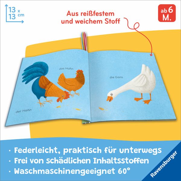 Mein Knuddel-Knautsch-Buch ist ein superstarkes Stoffbuch für jede Gelegenheit! Es ist besonders robust und lässt sich weder zerreißen noch zerbeißen. Trotzdem ist es kuschelweich und federleicht, sodass es auch für Kinder ab 6 Monaten bereits gut greifbar ist. Die bunten Bücher laden dazu ein, erste Geschichten mit allen Sinnen zu entdecken. Waschbar bei 60°C wird dieses Buch zu einem langlebigen Begleiter für kleine Leseratten.