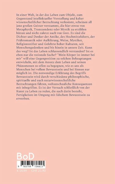 In einer Welt, in der das Leben zum Objekt, zum Gegenstand intellektueller Vorstellung und kalter wissenschaftlicher Betrachtung verkommt, scheinen all jene großen Geister verstummt, die hier etwas von Metaphysik, Transzendenz oder Mystik zu erzählen hätten und nicht zuletzt auch von Gott. Es sind die Dichter und Denker der Antike, des Hochmittelalters, der Frühromantik oder Aufklärung, Weise, Mystiker, Religionsstifter und Gelehrte hoher Kulturen, seit Menschengedenken und bis hinein in unsere Zeit. Kann das weg? Ist das Leben schlussendlich verstanden? Ist es eben nur die rationale Sache? "Mein Körper ist immer bei mir" will eine Gegenposition zu solchen Behauptungen entwickeln, mit dem Ansatz dem Leben und seinen Phänomenen so offen zu begegnen, wie es uns als Menschen bei vollem Bewusstsein und bei Sinnen nur möglich ist. Die notwendige Erklärung des Begriffs Bewusstsein wird durch verschiedene philosophische, spirituelle und auch naturwissenschaftliche Betrachtungen führen, weltanschauliche Konsequenzen mit inbegriffen. Es ist der Versuch schließlich von der Kunst zu Leben zu reden, die auch darin besteht, Fertigkeiten im Umgang mit falschem Bewusstsein zu erwerben.