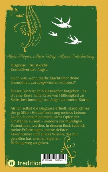 Mein Körper. Mein Weg. Meine Entscheidung - Heilung durch deine innere StimmeWas passiert, wenn eine junge Frau eine Krebsdiagnose erhält - und beschließt, nicht den vorgezeichneten Weg der Schulmedizin blind zu gehen, sondern ihren eigenen?Dieses Buch ist mehr als ein Gesundheitsratgeber. Es ist ein kraftvoller Erfahrungsbericht, ein Mutmacher und eine Einladung, das Steuer des eigenen Lebens selbst in die Hand zu nehmen - auch (und gerade) inmitten einer Krise. Katja Couve nimmt dich mit auf ihre persönliche Reise durch Angst, Ohnmacht, Zweifel und hin zu Klarheit, Stärke und Selbstverantwortung.Sie zeigt auf eindrucksvolle Weise, wie sie mit Hilfe ihres inneren Kompasses, naturheilkundlicher Begleitung und fundierter Informationen ihren individuellen Heilungsweg fand - jenseits von starren Standardbehandlungen. Ihre Geschichte berührt, bewegt und gibt Hoffnung.Dieses Buch richtet sich an Menschen, die in gesundheitlichen oder seelischen Krisen nach Orientierung suchen. An Frauen, die wieder lernen wollen, sich selbst zu vertrauen. Und an alle, die spüren: Heilung beginnt dort, wo Selbstbestimmung und inneres Wissen sich verbinden.Ein ehrlicher, spirituell fundierter und medizinisch aufgeklärter Wegweiser - für alle, die sich nicht mehr ohnmächtig fühlen wollen.