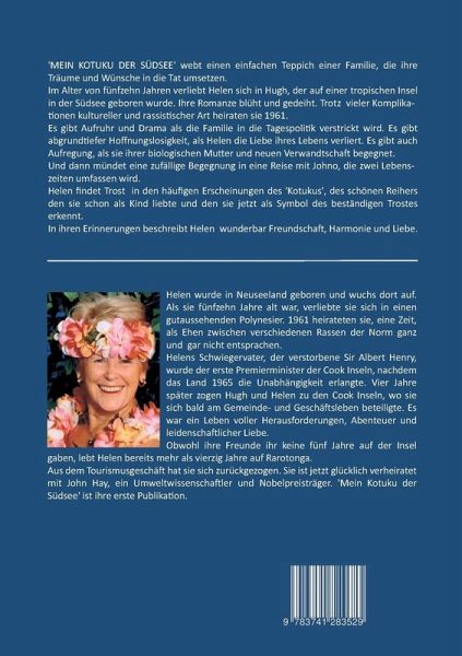 Helen Henry wurde in Neuseeland geboren und wuchs dort auf. Im Alter von 15 Jahren verliebte sie sich in den Polynesier Hugh Henry. 1961 heiratete sie ihn. Wenige Jahre später zogen sie auf die Südseeinsel Rarotonga, wo sie eine neue Existenz im Tourismusgeschäft aufbauten. Nach der Unabhängigkeit der Cookinseln, wozu Rarotonga gehört, wird Hughs Vater, Sir Albert Henry, der erste Premierminister. Was folgt, ist ein Leben voll Herausforderungen, Abenteuer und Leidenschaft, aber auch tiefen Trauer, nach dem Verlust ihrer großen Liebe, Hugh. Helen lebt jetzt 40 Jahre auf Rarotonga und ist glücklich verheiratet mit John Hay, ein Umweltwissenschaftler und Nobelpreisträger.
