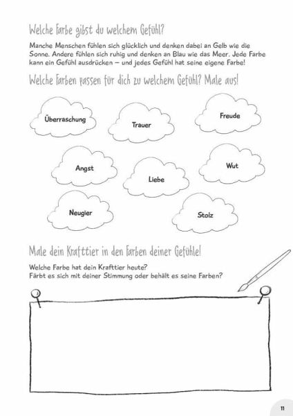 Vertiefte Beschäftigung mit dem täglichen Begleiter: die Bedeutung der Krafttiere noch besser verstehenArbeitsheft im DIN-A4-Format mit S/W-Ausmalbildern, Rätseln und kreativen AufgabenMit Krafttier-Rad zum AusschneidenPersönliche Stärken, Bedürfnisse und Gefühle entdecken und verstehen Geeignet für Kinder von 4 bis 10 Jahren