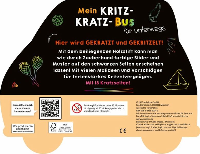 18 thematisch passende Hintergründe: Hinter der schwarzen Oberfläche warten tolle Hintergründe darauf, freigekratzt zu werdenMit Kratzstift zum Sofortloslegen: Der Holzstift liegt gut in der Hand und zaubert schöne Effekte Mit Malideen und Anregungen: Zu jeder Kratzseite gibt es tolle Anregungen, was man auf dem Scratch-Papier alles malen und gestalten kannFür unterwegs: Das Kritzkratz-Buch passt in jede Tasche, sodass im Auto, bei Oma und Opa, beim Warten oder im Kinderzimmer keine Langeweile aufkommtToll als Geschenk: Ideal für Kinder ab 5 Jahren, zum Geburtstag oder einfach als Mitbringsel für zwischendurch