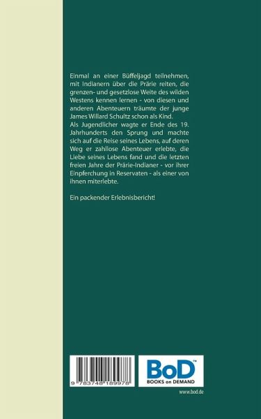 Einmal an einer Büffeljagd teilnehmen, mit Indianern über die Prärie reiten, die grenzen- und gesetzlose Weite des Wilden Westens kennen lernen - von diesen und anderen Abenteuern träumte der junge James Willard Schultz schon als Kind.Ende des 19. Jahrhunderts wagte er als Jugendlicher den Sprung und machte sich auf die Reise seines Lebens, auf deren Weg er zahllose Abenteuer erlebte, die Liebe seines Lebens fand und die letzten freien Jahre der Prärie-Indianer - vor ihrer Einpferchung in Reservate - als einer von ihnen miterlebte.Ein packender Erlebnisbericht!Erstmals vollständig ins Deutsche übersetzt von Maria Weber.