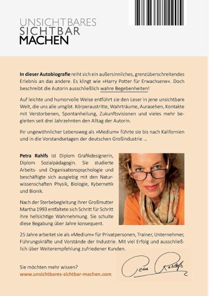In dieser Autobiografie reiht sich ein außersinnliches, grenzüberschreitendes Erlebnis an das andere. Es klingt wie »Harry Potter für Erwachsene«. Doch beschreibt die Autorin ausschließlich wahre Begebenheiten!Auf leichte und humorvolle Weise entführt sie den Leser in jene unsichtbare Welt, die uns alle umgibt. Körperaustritte, Wahrträume, Aurasehen, Kontakte mit Verstorbenen, Spontanheilung, Zukunftsvisionen und vieles mehr begleiten seit drei Jahrzehnten den Alltag der Autorin. Ihr ungewöhnlicher Lebensweg als »Medium« führte sie bis nach Kalifornien und in die Vorstandsetagen der deutschen Großindustrie ...