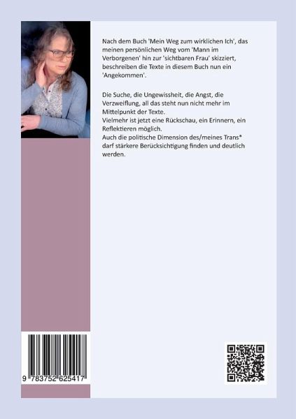 Nach dem Buch 'Mein Weg zum wirklichen Ich', das meinen persönlichen Weg vom 'Mann im Verborgenen' hin zur 'sichtbaren Frau' skizziert, beschreiben die Texte in diesem Buch nun ein 'Angekommen'.Die Suche, die Ungewissheit, die Angst, die Verzweiflung, all das steht nun nicht mehr im Mittelpunkt der Texte.Vielmehr ist jetzt eine Rückschau, ein Erinnern, ein Reflektieren möglich.Auch die politische Dimension des/meines Trans_ darf stärkere Berücksichtigung finden und deutlich werden.