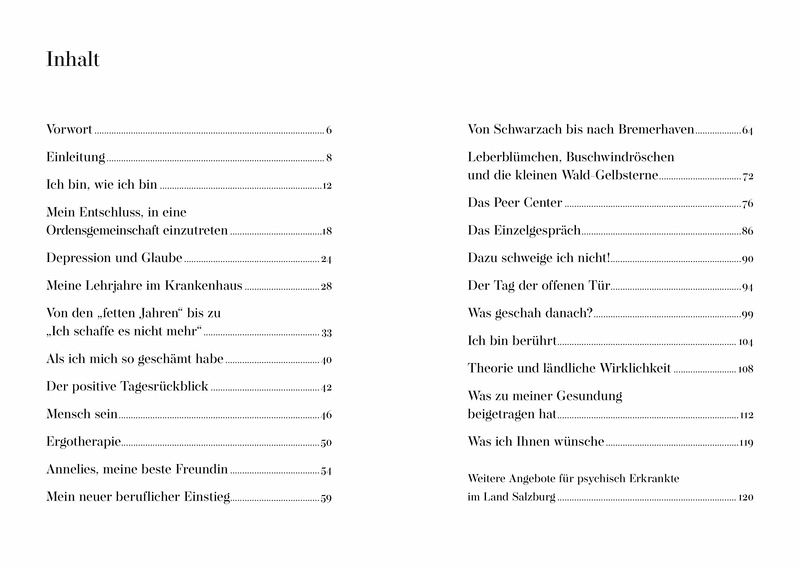 Am tiefsten Punkt angekommen habe sie sich nicht einmal mehr eine Scheibe Brot selber abschneiden können. Die Lungauerin Michaela Lerchner, Mitglied im Orden der Halleiner Schwestern Franziskanerinnen und diplomierte Krankenschwester, erkrankte 1994 an einer schweren Depression. Über viele Jahre war diese fester Bestandteil ihres Lebens und nahm ihr alle Kraft und Lebensfreude.