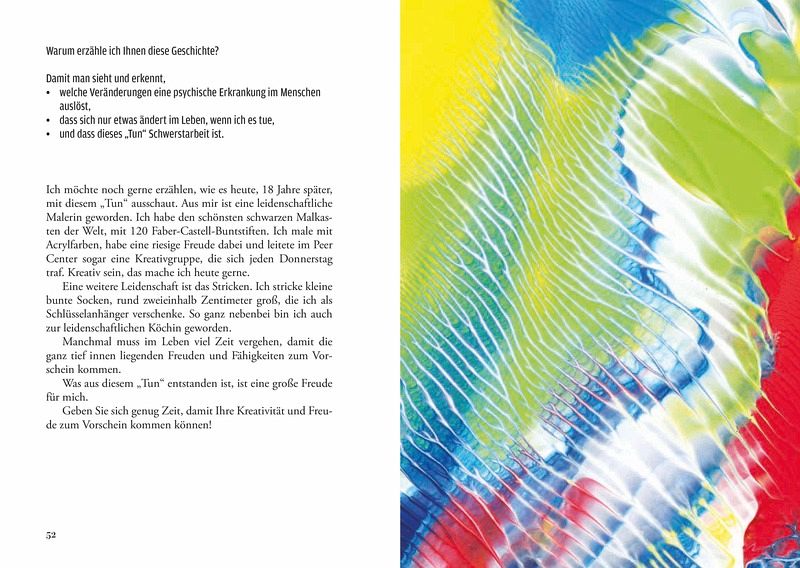 In ihrem Buch versammelt sie Geschichten, die sich in ihrem Leben und auf Ihrem Gesundungsweg zugetragen haben. Sr. Michaela schildert ihre Erfahrungen mit der Depression genauso wie die wertvollen Begegnungen und Erlebnisse, die ihr dabei geholfen haben, Wege aus der Krise zu finden.