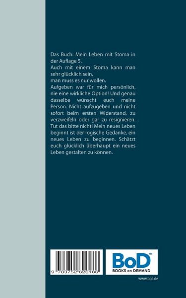 Das Buch: Mein Leben mit Stoma in der Auflage 1. Auch mit einem Stoma kann man sehr glücklich sein, man muss es nur wollen. Aufgeben, war für mich persönlich nie eine Option! Und genau dasselbe wünscht euch, meine Person nicht aufzugeben, und nicht sofort beim ersten Widerstand zu verzweifeln oder gar zu resignieren. Mein neues Leben beginnt ist der logische Gedanke, ein neues Leben zu beginnen. Schätzt euch glücklich, überhaupt ein neues Leben gestalten zu können.
