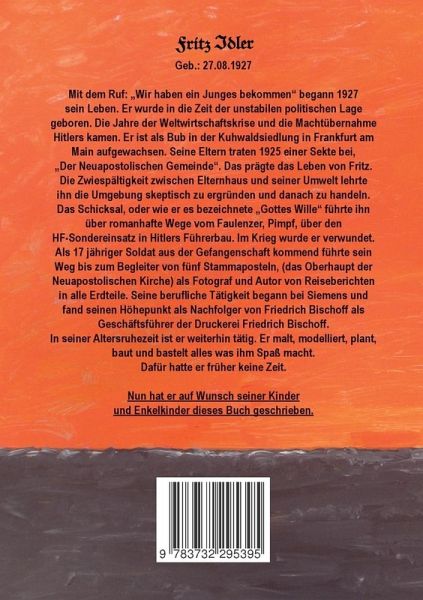 Mit dem Ruf: "Wir haben ein Junges bekommen " begann 1927 sein Leben. Er wurde in die Zeit der unstabilen politischen Lage geboren. Die Jahre der Weltwirtschaftskrise und die Machtübernahme Hitlers kamen. Er ist als Bub in der Kuhwaldsiedlung in Frankfurt am Main aufgewachsen. Seine Eltern traten 1925 einer Sekte bei, "Der Neuapostolischen Gemeinde". Das prägte das Leben von Fritz.Die Zwiespältigkeit zwischen Elternhaus und seiner Umwelt lehrte ihn, die Umgebung skeptisch zu ergründen und danach zu handeln.Das Schicksal, oder wie er es bezeichnete "Gottes Wille" führte ihn über romanhafte Wege vom Faulenzer, Pimpf, über den HF-Sondereinsatz in Hitlers Führerbau. Im Krieg wurde er verwundet.Als 17 jähriger Soldat aus der Gefangenschaft kommend führte sein Weg bis zum Begleiter von fünf Stammaposteln, (das Oberhaupt der Neuapostolischen Kirche) als Fotograf und Autor von Reiseberichten in alle Erdteile. Seine berufliche Tätigkeit begann bei Siemens und fand seinen Höhepunkt als Nachfolger von Friedrich Bischoff als Geschäftsführer der Druckerei Friedrich Bischoff.In seiner Altersruhezeit ist er weiterhin tätig. Er malt, modelliert, plant, baut und bastelt alles, was ihm Spaß macht.Dafür hatte er früher keine Zeit.