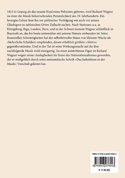 Richard Wagner: Mein Leben Erstdruck als Privatdruck in vier Teilen: Basel, 1870¿1880. Erste öffentliche Ausgabe: München (Bruckmann) 1911. Vollständige Neuausgabe mit einer Biographie des Autors. Großformat, 190 x 270 mm Herausgegeben von Karl-Maria Guth. Berlin 2015. Textgrundlage ist die Ausgabe: Wagner, Richard: Mein Leben. Erste authentische Veröffentlichung, Vollständiger Text unter Zugrundelegung der im Richard-Wagner-Archiv Bayreuth aufbewahrten Diktatniederschrift, ergänzt durch Richard Wagners Annalen 1864 bis 1868 und eine Zeittafel für die Jahre 1869 bis 1883), Vorgelegt und mit einem Nachwort von Martin Gregor-Dellin, München: List, 1963. Die Paginierung obiger Ausgabe wird in dieser Neuausgabe als Marginalie zeilengenau mitgeführt. Umschlaggestaltung von Thomas Schultz-Overhage. Gesetzt aus Minion Pro, 11.3 pt. Über den Autor: 1813 in Leipzig als das neunte Kind eines Polizisten geboren, wird Richard Wagner zu einer die Musik beherrschenden Persönlichkeit des 19. Jahrhunderts. Ein bewegtes Leben lässt ihn vor politischer Verfolgung wie auch vor seinen Gläubigern in zahlreichen Orten Zuflucht suchen. Nach Stationen u.a. in Königsberg, Riga, London, Paris, und in der Schweiz kommt Wagner schließlich in Bayreuth an, das bis heute untrennbar mit seinem Namen verbunden ist. Seine finanziellen Schwierigkeiten hat der selbstbewußte Mann von kleinem Wuchs als »lächerliche Schulden« empfunden, denen erheblich größere »Aktiva« gegenüberstünden. Und in der Tat ist seine Wirkungsmacht auf die ihm nachfolgende Musik wohl einzigartig. Zu einer umstrittenen Figur ist Richard Wagner wegen seiner Auslegbarkeit im Sinne des Nationalsozialismus geworden, der er maßgeblich durch seine antisemitische Schrift »Das Judenthum in der Musik« Vorschub geleistet hat.