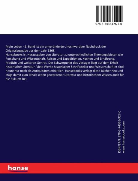 Mein Leben - 5. Band ist ein unveränderter, hochwertiger Nachdruck der Originalausgabe aus dem Jahr 1868.
