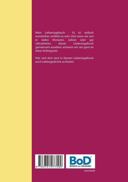 Mein Liebestagebuch - Es ist einfach wunderbar, verliebt zu sein. Und wenn wir uns in vielen Monaten, Jahren oder gar Jahrzehnten dieses Liebestagebuch gemeinsam ansehen, erinnern wir uns gern an diese Anfangszeit. Hier und dort sind in diesem Liebestagebuch auch Liebesgedichte zu finden.