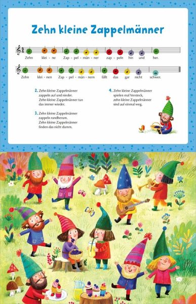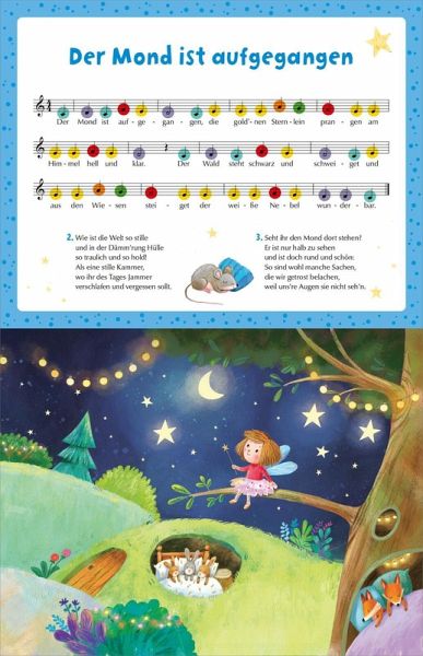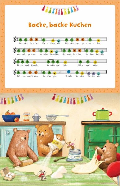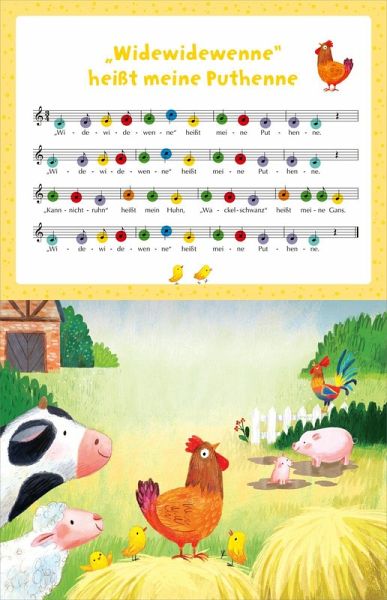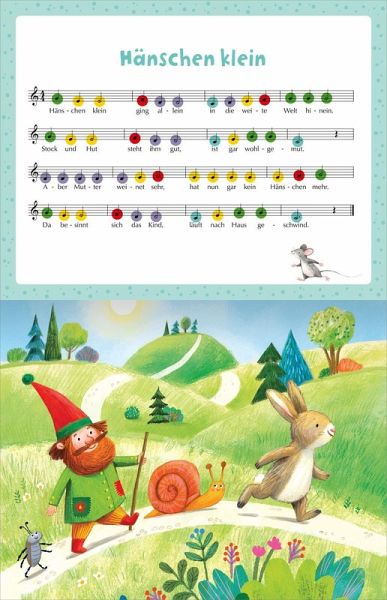 Auf 10 bunt illustrierten Doppelseiten finden sich erste Lieblingslieder für Kinder mit Notensätzen und Liedtexten, wie "Hänschen klein", "Tuff, tuff, tuff, die Eisenbahn" und "Der Mond ist aufgegangen". Einfach die farbig markierten Punkte auf den Tasten drücken und losspielen. Die Farben der Noten entsprechen den Farben auf den Tasten.