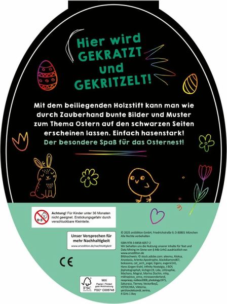 18 thematisch passende Hintergründe: Hinter der schwarzen Oberfläche warten bunte Frühlingsmuster darauf, freigekratzt zu werden.Mit Kratzstift zum Sofortloslegen: Der Holzstift liegt gut in der Hand und zaubert schöne Effekte Mit Malideen und Anregungen: Zu jeder Kratzseite gibt es tolle Anregungen, was man auf dem Scratch-Papier alles malen und gestalten kannFür unterwegs: Das Kritzkratz-Buch passt in jede Tasche, sodass im Auto, bei Oma und Opa, beim Warten oder im Kinderzimmer keine Langeweile aufkommtToll für das Osterkörbchen: Ein ideales Geschenk für Kinder ab 5 Jahren