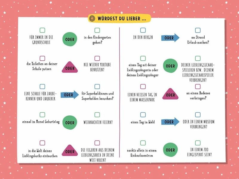 Der Block enthält alles, was du für sofortigen Spielspaß brauchst: vorgedruckte Spielfelder, übersichtliche Anleitungen und lustige Illustrationen. Einfach ein paar Stifte schnappen und schon kann es losgehen! Besonders praktisch: Du kannst die Spiele allein mit deinem besten Freund spielen oder in größeren Gruppen - perfekt für Kindergeburtstage, Schulausflüge oder Familienabende. Die Spiele fördern nicht nur Kreativität und soziale Fähigkeiten, sondern sorgen auch für unvergessliche gemeinsame Momente und jede Menge Lacher. Ideal für Kinder ab 8 Jahren, die eine sinnvolle Alternative zur Bildschirmzeit suchen. Ob im Urlaub, auf langen Autofahrten oder beim Spieleabend zu Hause - dieser Spiele-Block ist dein Ticket zu stundenlangem Spielvergnügen ohne Langeweile!