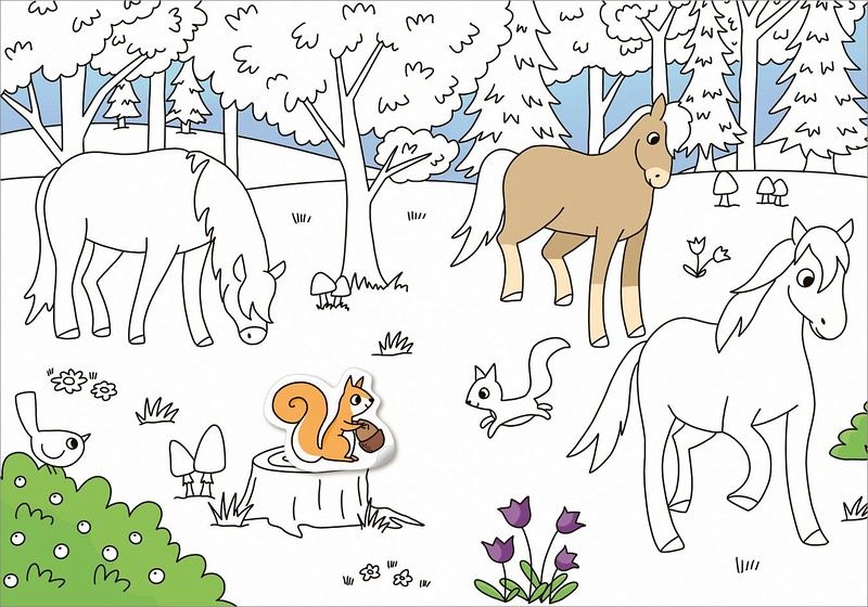 Schöne großformatige Szenen werden mit Buntstiften und Stickern lebendig. Ob auf der Weide, im Stall oder beim Ausritt, hier finden Pferde-Fans ganz viel Ausmalstoff. 35 Sticker auf dem beigefügten Stickerbogen können entweder auf das vorhergesehene Motiv oder an anderer Stelle aufgeklebt werden. So entstehen schöne Motive mit den Lieblingstieren der Kinder. Ganz viel Mal- und Stickerspaß für Pferde-Fans ab 5 Jahren.
