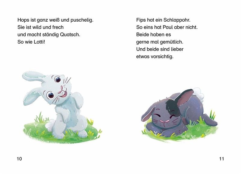 Lesen lernen mit süßen Kaninchen: Eine abenteuerliche Hasen-Geschichte für Leseanfänger_innen ab 6 Jahren. Geschwister als Team: Das Erstlesebuch mit Paul, Lotti und ihren zwei entlaufenen Kaninchen erzählt eine warmherzige Geschichte über Tierliebe, Zusammenhalt und Verantwortung übernehmen. Toll ausgestattet: Mit einfachen Wörtern, kurzen Sätzen und vielen niedlichen Bildern im Comic-Stil. Tierischer Lesespaß: Das Lesen lernen-Buch motiviert kleine Tierfreunde ab 6 Jahren zum selbstständigen Lesen.