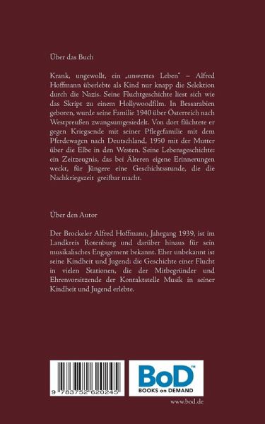 Krank, ungewollt, ein "unwertes Leben" - Alfred Hoffmann überlebte als Kind nur knapp die Selektion durch die Nazis. Seine Fluchtgeschichte liest sich wie das Skript zu einem Hollywoodfilm. In Bessarabien geboren, wurde seine Familie 1940 über Österreich nach Westpreußen zwangsumgesiedelt. Von dort flüchtete er gegen Kriegsende mit seiner Pflegefamilie mit dem Pferdewagen nach Deutschland, 1950 mit der Mutter über die Elbe in den Westen. Seine Lebensgeschichte: ein Zeitzeugnis, das bei Älteren eigene Erinnerungen weckt, für Jüngere eine Geschichtsstunde, die die Nachkriegszeit greifbar macht.