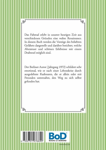 Das Fahrrad erlebt in unserer Zeit aus verschiedenen Gründen eine wahre Renaissance. In diesem Buch werden die Vorzüge des beliebten Gefährts dargestellt und darüber berichtet, welche Abenteuer und schönen Erlebnisse mit einem Drahtesel möglich sind.