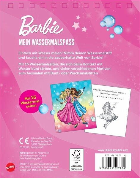 Einfach mit Wasser malen! Fahre mit deinem Wassermalstift über die Seiten und tauche ein in die zauberhafte Welt von Barbie! Wenn du mit dem Wassermalstift über die Bilder streichst, erscheinen sie in bunten Farben. Mit 16 Wassermalseiten und vielen verschiedenen Motiven zum Ausmalen mit Bunt- oder Wachsmalstiften. Entdecke Meerjungfrauen mit bunt schimmernden Schwanzflossen und Prinzessinnen in märchenhaften Kleidern. -Zaubermalbuch zum Malen mit Wasser-Mit 16 Wassermalseiten zum immer wieder Ausmalen-Mit wiederbefüllbarem Wassermalstift