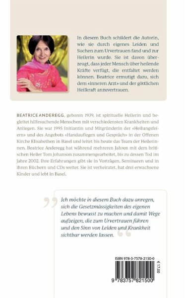 In diesem Buch schildert die Autorin, wie sie durch eigenes Leiden und Suchen zum Urvertrauen fand und zur Heilerin wurde. Sie ist davon überzeugt, dass jeder Mensch über heilende Kräfte verfügt, die entfaltet werden können. Beatrice ermutigt dazu, sich dem «inneren Arzt» und der göttlichen Heilkraft anzuvertrauen.